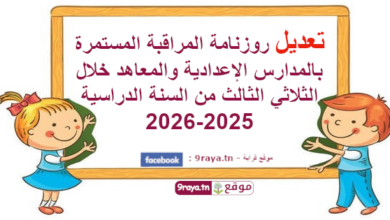 تعديل روزنامة المراقبة المستمرة بالمدارس الإعدادية والمعاهد خلال الثلاثي الثالث من السنة الدراسية 2025-2026